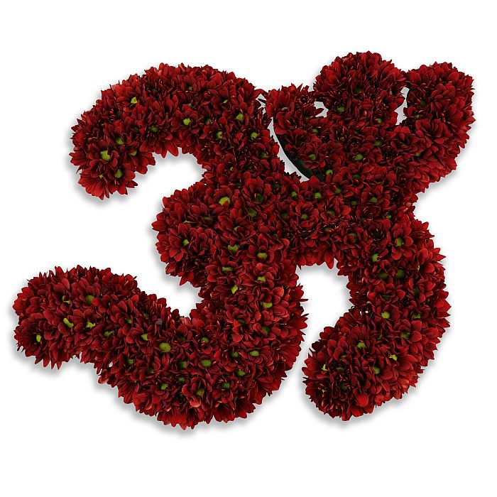 Pay a heartfelt tribute with our Red Om/Aum Hindu Tribute, thoughtfully handcrafted by Flowers Welwyn. This striking memorial arrangement features rich red (crimson) chrysanthemums, carefully arranged in the sacred Om/Aum symbol to honour Hindu faith and tradition. Ideal for funerals, remembrance ceremonies, and religious services, it offers a beautiful way to express your deepest sympathies and spiritual support to the grieving family.